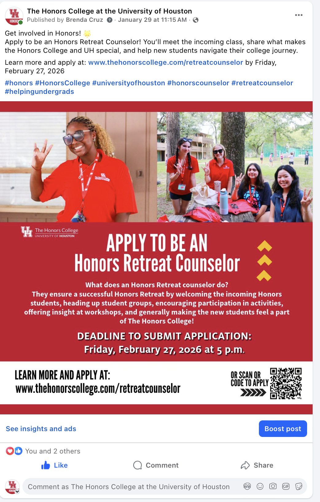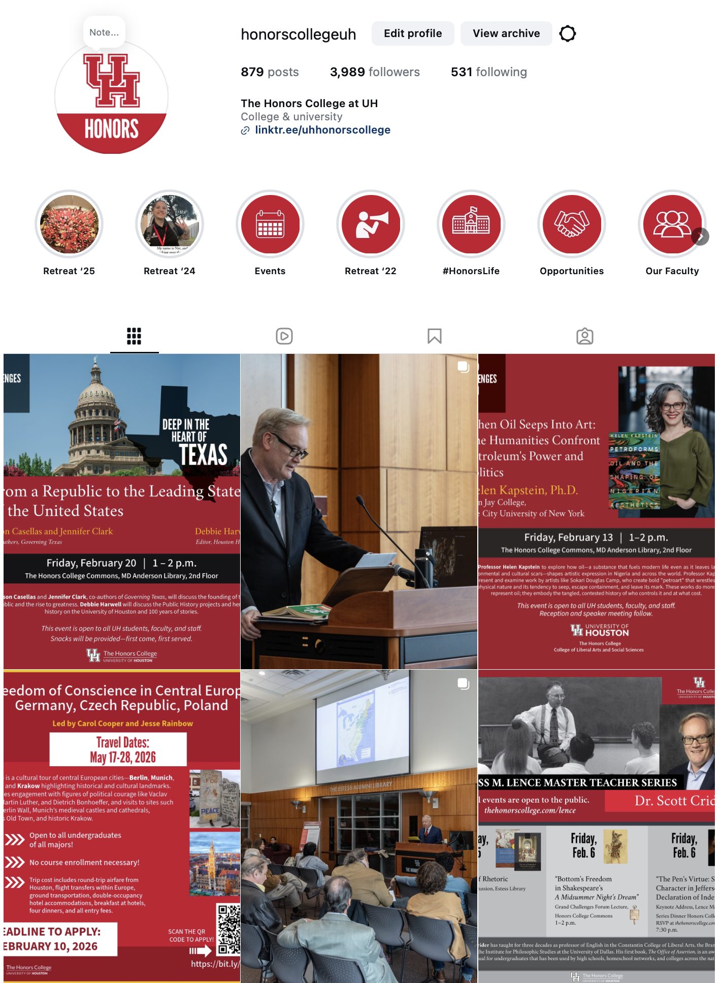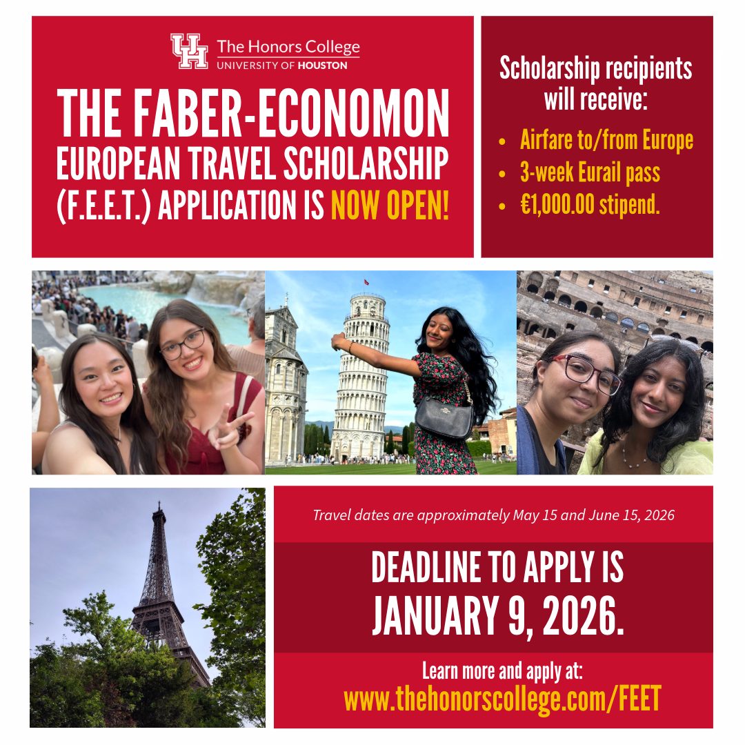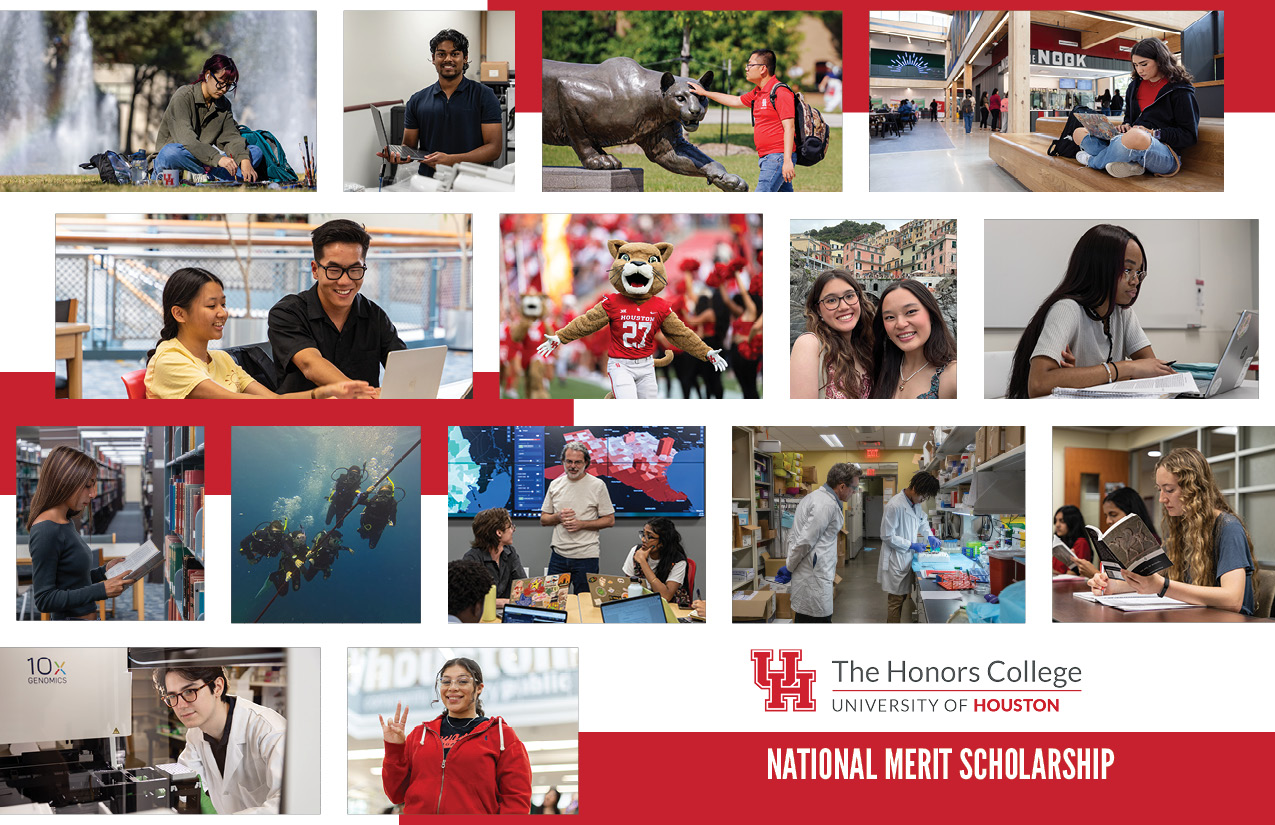 A selection of digital collateral for web, social media and print as part of the Honors College at the University of Houston.